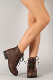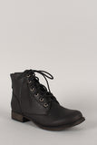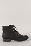 Step out in effortlessly chic look with these military ankle booties ! Featuring round toe, zipper trim at the back, stitching details, and low heel. Finished with cushioned insole, soft interior lining, and lace up front closure.