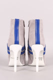 These sporty booties feature a pointy toe silhouette, front lace-up design, and stripes detailing. Finished with a slightly cushioned insole and side zipper closure.