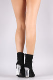 These alluring booties feature an almond toe silhouette, vegan nubuck leather upper, and chunky perspex heel. Finished with a cushioned insole and convenient side zip closure.