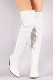 Snake Embossed Chunky Heeled Over-The-Knee Western Boots