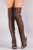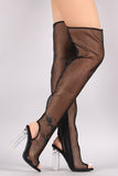 • Wild Diva Lounge Mesh Chunky Perspex Heeled Over-The-Knee Boots