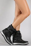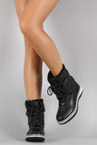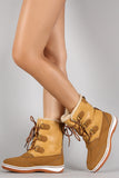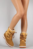 • Faux Shearling Round Toe Lace Up Duck Boots