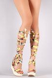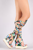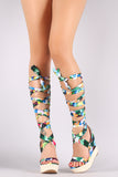 Shoe Republic LA Abstract Floral Leg Wrap Espadrille Platform Wedge