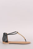 Qupid Metallic Accent T-Strap Thong Flat Sandal